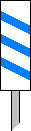 The original form of 'loop clear' marker, as used on the Scottish Region, was a blue and white diagonally striped reflectorised board [25.33]. This board was actually a blue and white derivative of the red and white striped sign formerly used to mark the limits of an open level crossing (see [16.30]).