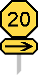 In a significant departure from the usual British practice, modern speed restriction signs in Northern Ireland, both permanent and temporary, are of the same types as those found in the Republic of Ireland (see [IE.18] and [IE.23 - IE.27]). However, permanent speed restriction signs applicable to diverging routes are fitted with a standard matching design of directional arrow positioned below the board [NI.3]. |