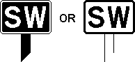 New experimental whistle boards were introduced at certain user-worked level crossings on the Scottish Region from 1993. The design of this board is similar to the special speed restriction board provided on the approach to a locally monitored level crossing (see [16.28]), but the speed figure is replaced by a letter "W" [15.9]. Where this sign is provided, the driver must sound the two-tone horn continuously until the train is about 50 yards (46 metres) from the crossing. |