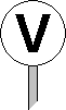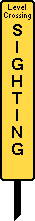 Various alternative styles of sighting markers have been installed at user-worked, bridleway and footpath crossings, each facing towards the relevant level crossing. The new sighting markers provided on the Western Route from early 2014 comprise a white post with a yellow reflectorised strip on the side facing the level crossing [16.45]. Around the same time, sighting markers appeared on the Sussex Route bearing the informative, if somewhat long-winded, description "level crossing off track vegetation cutback sighting marker" in red text on a square blue background [16.46]. On the London North Western Route, the sighting marker boards are in the form of a solid yellow triangle [16.47], while those on the Great Eastern Main Line comprise a tall yellow board with the legend "level crossing" at the top and the word "sighting" below, with the letters arranged vertically [16.48]. The sighting markers on the Isle of Wight are the same style as those used in the Republic of Ireland, consisting of a white circular board with a black letter "V" (for "vegetation") [16.49].