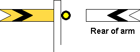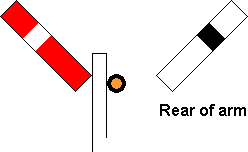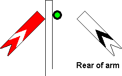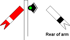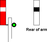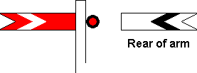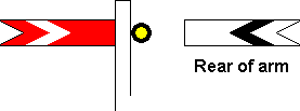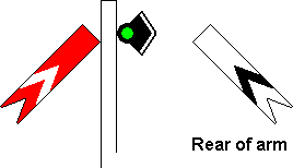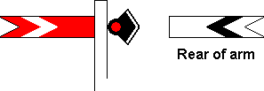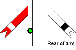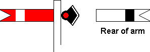 Banner type main signals on the Great Western Railway had a red arm on a black background [2.74 & 2.75].