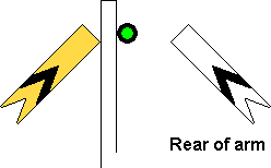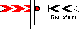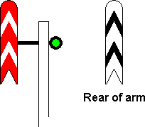 During the First World War, the Great Eastern Railway painted the fronts of the arms white on some of the semaphore starting signals at London Liverpool Street station.